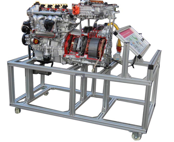 解剖后的混合動力系統(tǒng)各總成(包含發(fā)動機(jī)、MG1、/MG2電機(jī)、變速器總成和變頻器),大功率減速電機(jī)、控制機(jī)構(gòu)、設(shè)備展示臺架、控制面板、萬向腳輪等組成。