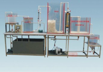 有機玻璃制成初沉池、混合調(diào)節(jié)池、流化床曝氣池、推流式曝氣池、二沉池、配套裝置有配水箱1只、水泵1臺、回流水泵1臺、壓力表1只、氣體流量計2只、液體流量計1只、低噪音充氧風機1臺、可編程時間控制器1套、電控箱1只、漏電保護開關(guān)、按鈕開關(guān)、連接管道和球閥、不銹鋼或鋁型材臺架帶萬向輪)等組成。