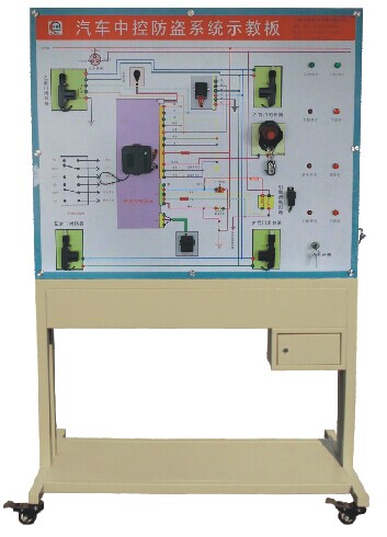 本產(chǎn)品選用汽車中控與防盜系統(tǒng)實(shí)物,展示汽車中控與防盜系統(tǒng)的結(jié)構(gòu)與原理;面板上繪有完整的中控與防盜系統(tǒng)的電路圖,設(shè)置有檢測端子,可通過儀器儀表檢測各種信號(hào)參數(shù)如電壓、電阻、頻率等。