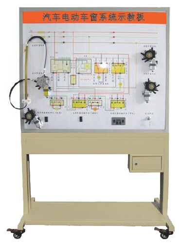 本產(chǎn)品選用桑塔納汽車電動(dòng)車窗系統(tǒng)實(shí)物,展示汽車電動(dòng)車窗系統(tǒng)的結(jié)構(gòu)與原理;面板上繪有完整的電動(dòng)車窗系統(tǒng)的電路圖,設(shè)置有檢測(cè)端子,可通過儀器儀表檢測(cè)各種信號(hào)參數(shù)如電壓、電阻、頻率等。