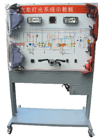 本產(chǎn)品選用原車燈光系統(tǒng)實物,展示汽車燈光系統(tǒng)的結(jié)構(gòu)與原理;面板上繪有完整的燈光系統(tǒng)的電路圖,設(shè)置有檢測端子,可通過儀器儀表檢測各種信號參數(shù)如電壓、電阻、頻率等。