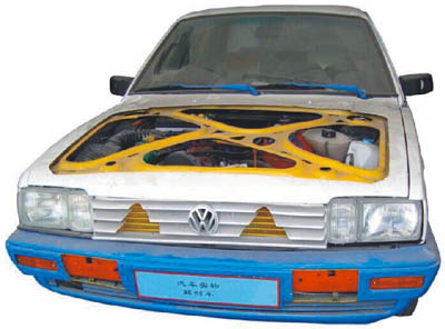 多功能解剖車選用桑塔納2000為基礎,可容易地看見發(fā)動機艙、車身側圍的構造結構、鋼板的厚度及獨立懸掛的結構,甚至車輪的輪轂及輪胎的橫截面。此外,車內(nèi)方向盤、排擋桿、手剎、安全帶固定裝置及安全帶卷等平時都被包裹嚴實的部件也被特別地一剖為二,內(nèi)部工藝精度、構造清晰呈現(xiàn),能夠展示汽車各總成裝置以及各附件位置。